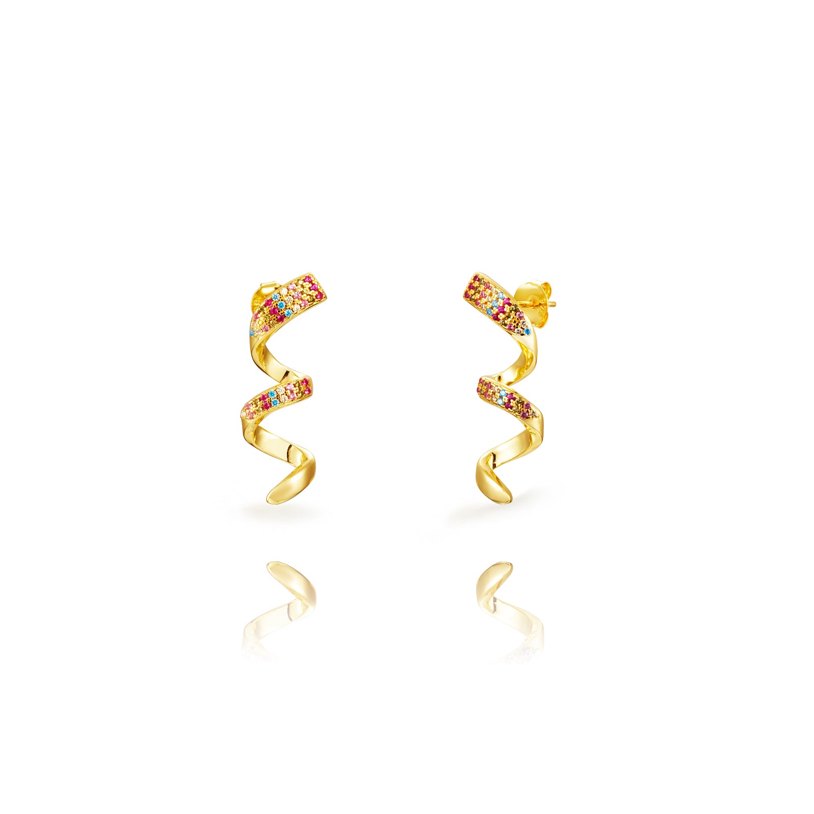 Brincos Prata Espiral Dourada Zircônias Brancas