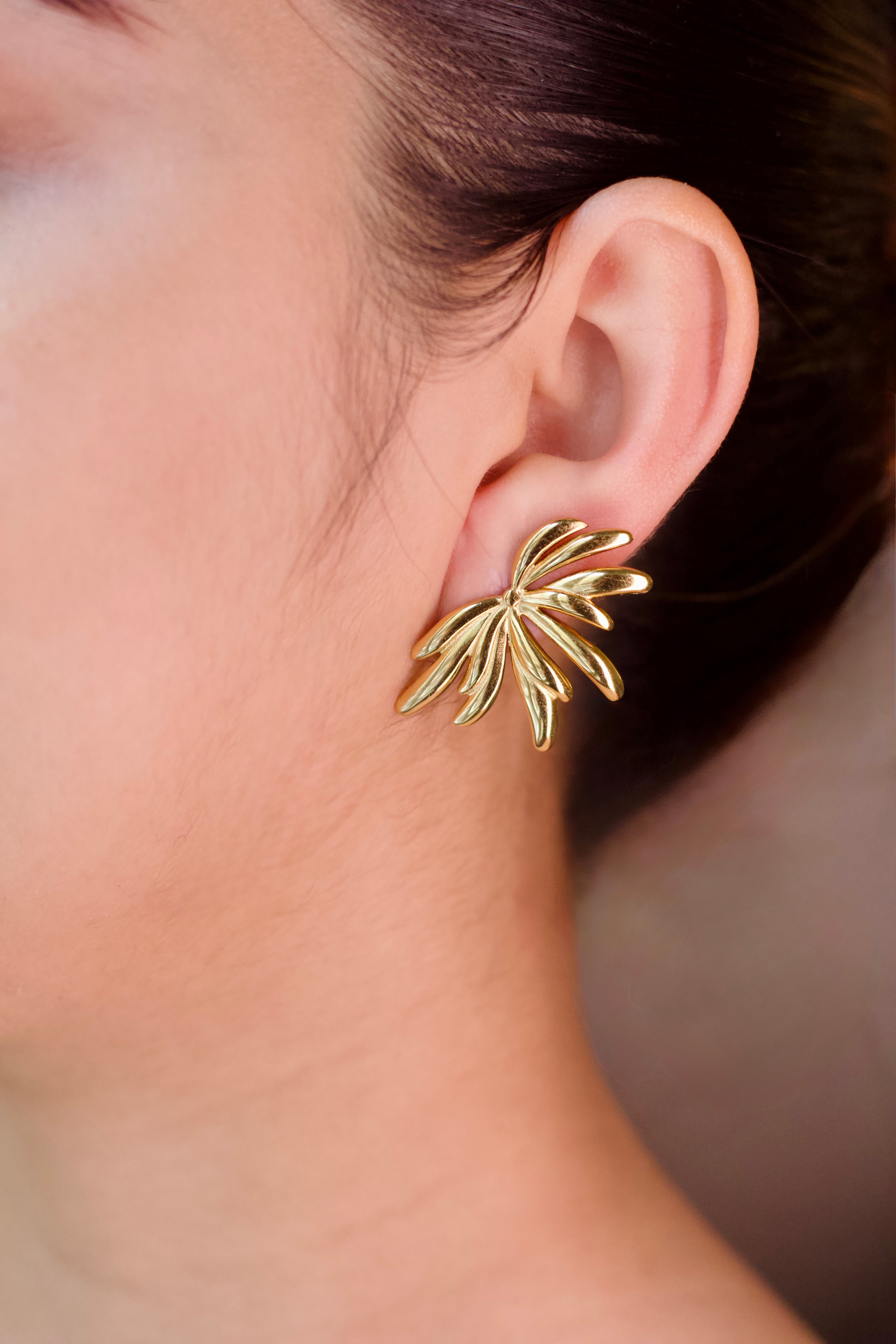 Brincos Dourados Flor Abstrata