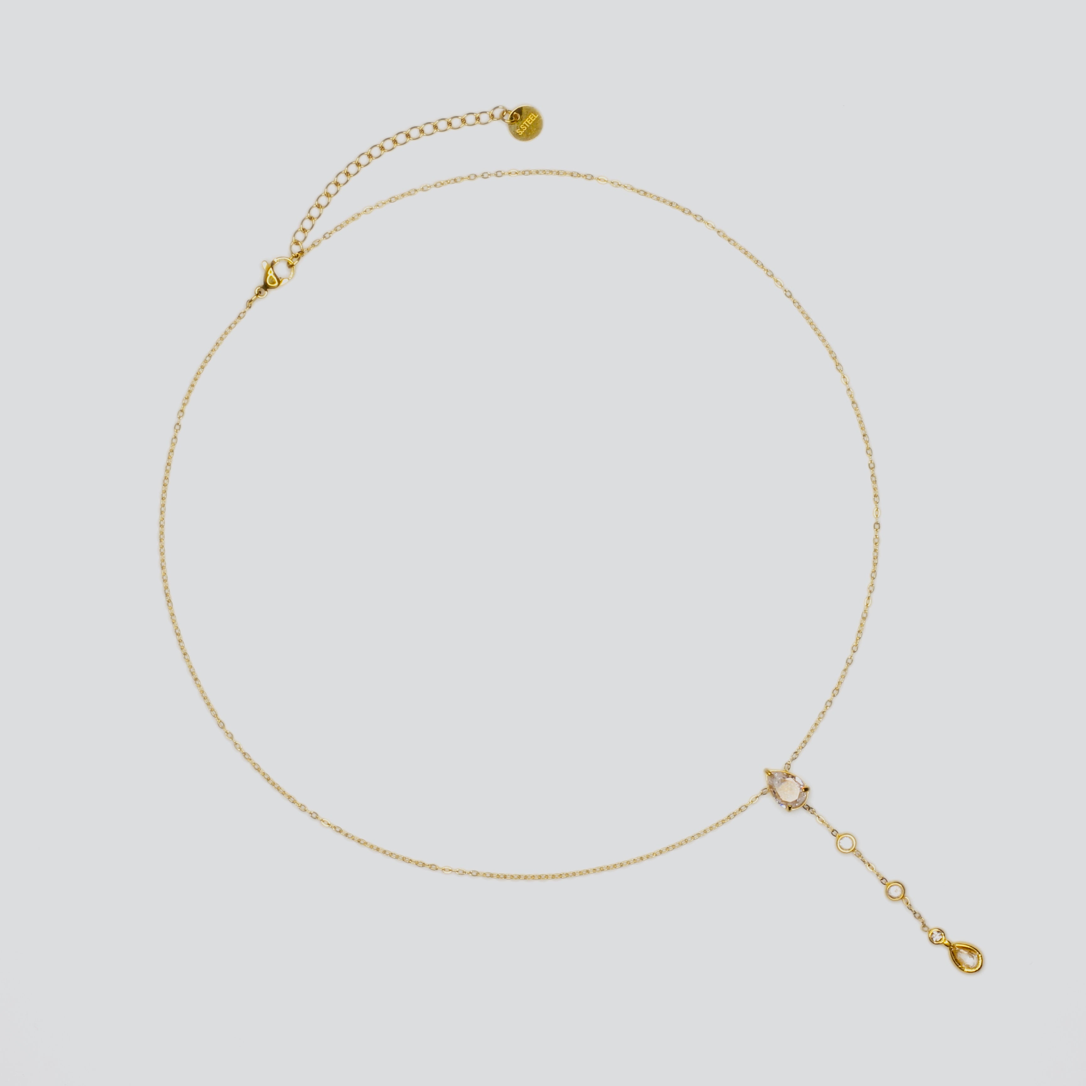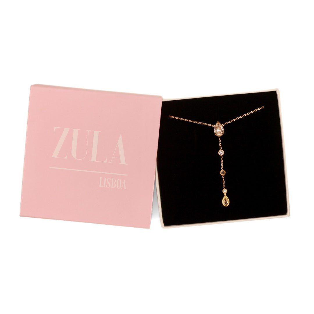 Colar Dourado Gotas com Zircónias