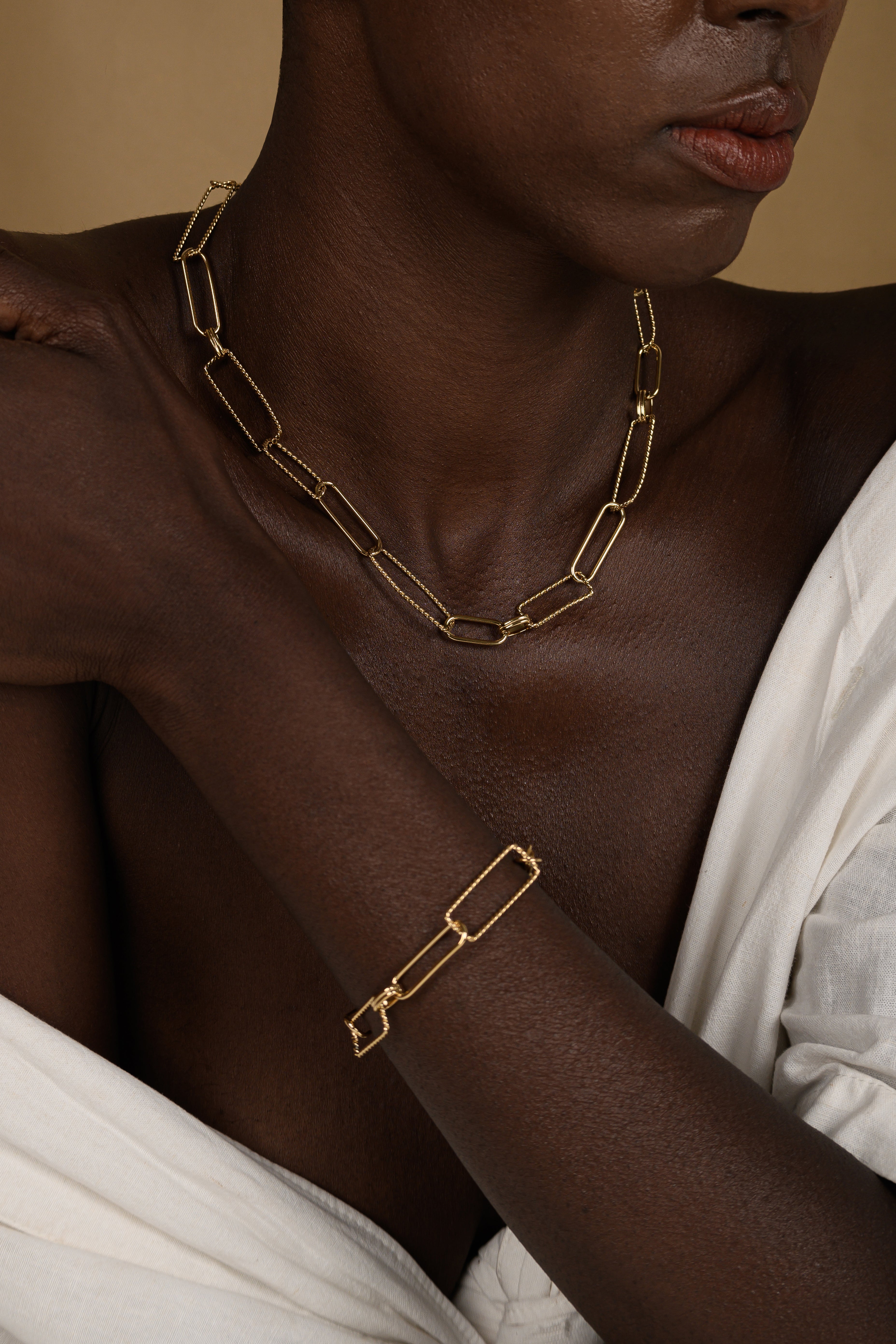 Aco Colar dourado Enterlaçado Rectangular e oval Picotado
