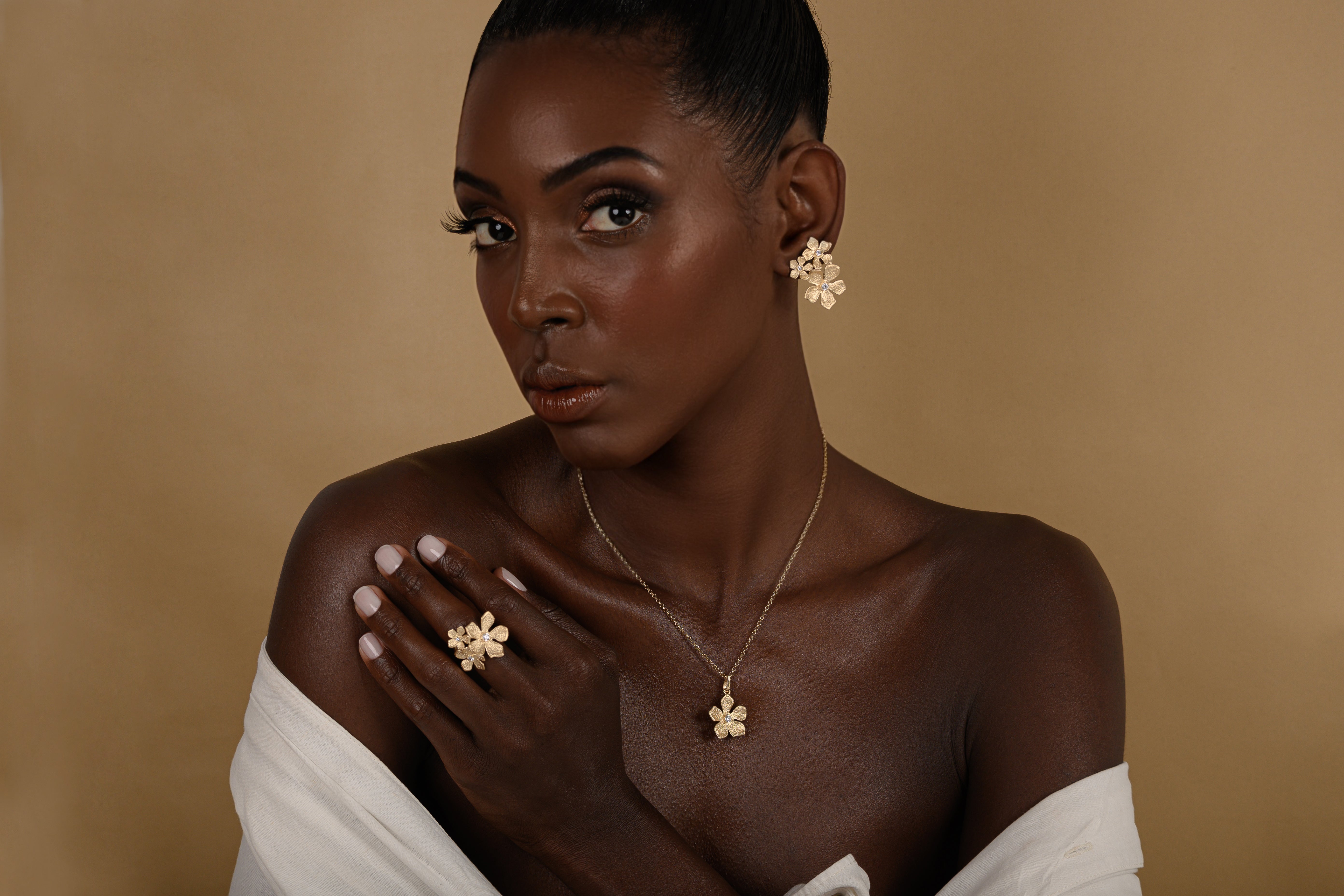 Anel 3 Flores Zircónia