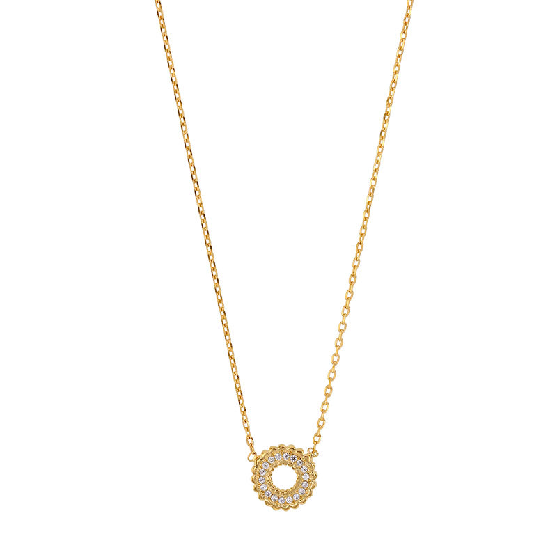 Aco Colar Dourado Circular com Zircónias Aberto no meio