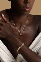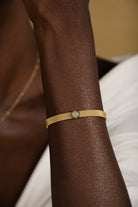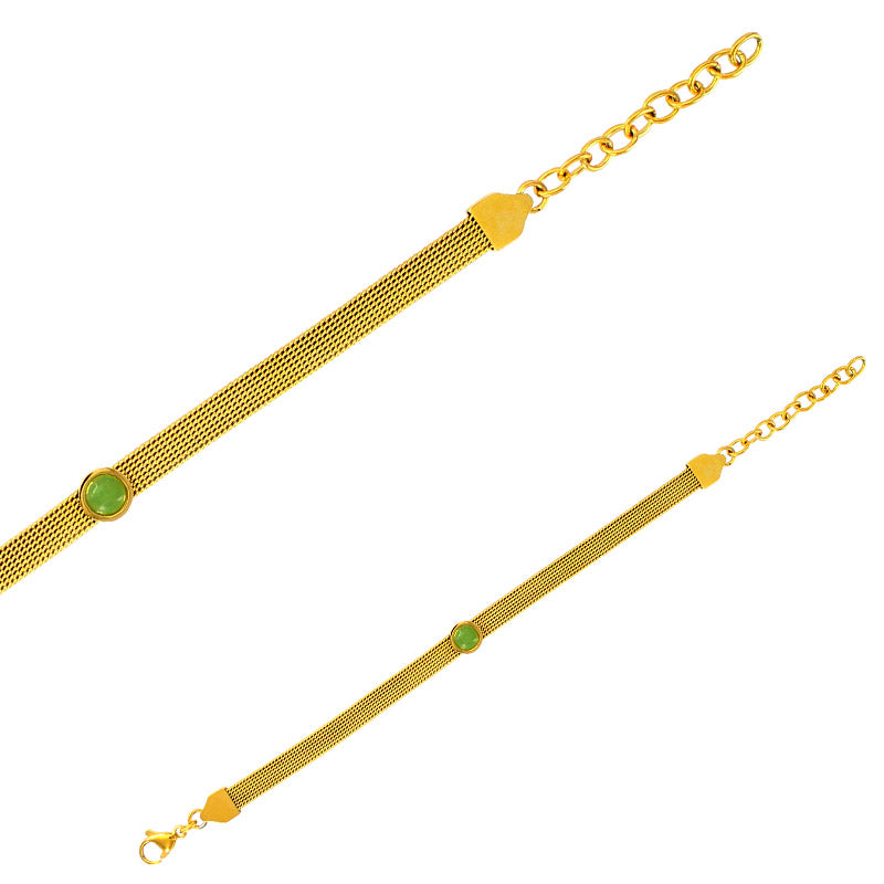 Pulseira dura espalmada Pedra Verde 17+ 4 cm