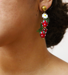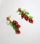 Brincos Aço Dourado Moranguinhos e Flor Branca