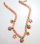 Colar Aço Doudado Perolas Rosas Morangos E Flores