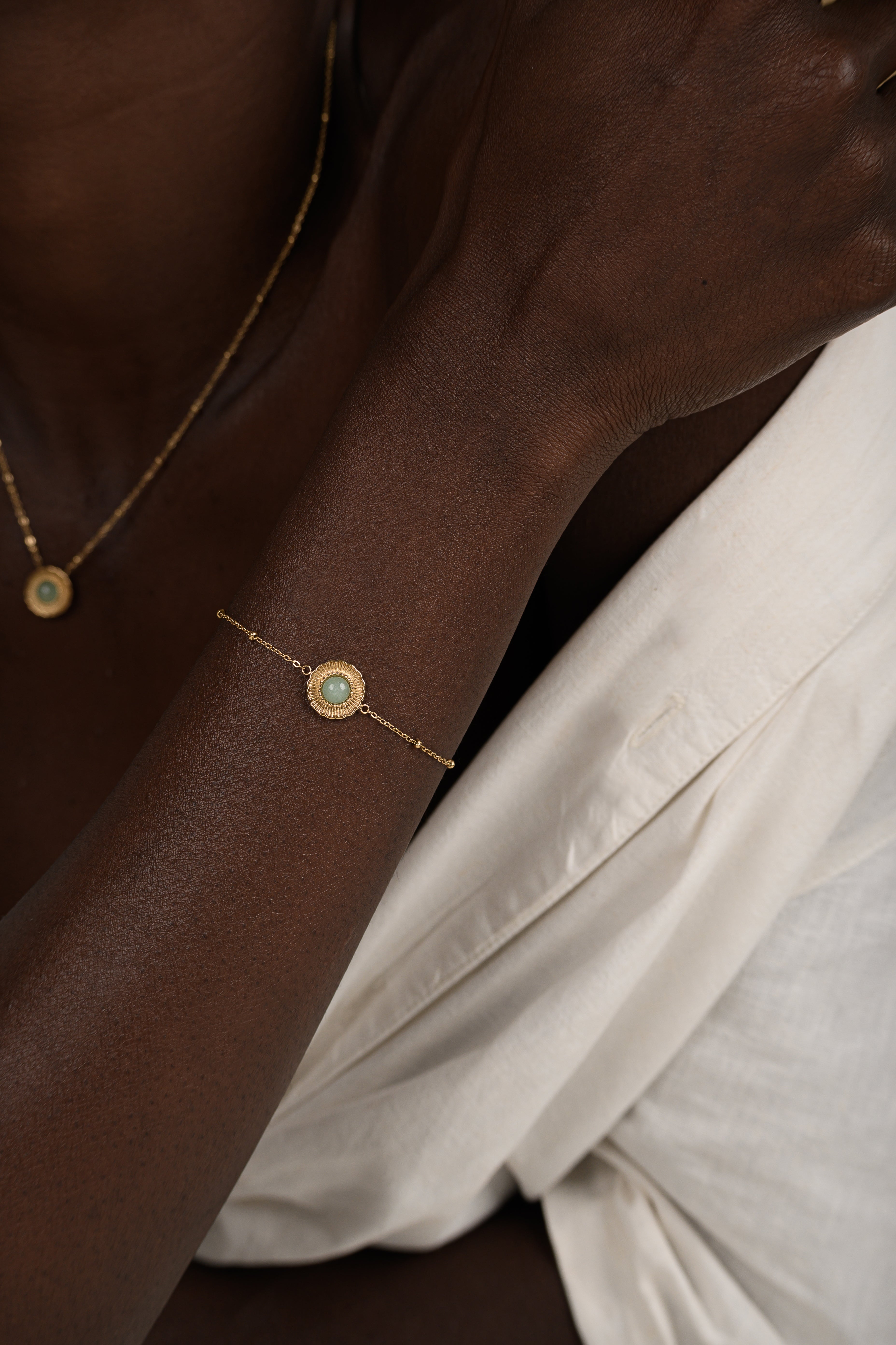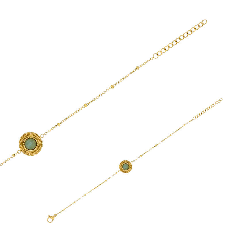 Aco Pulseira dourada com Formato Flor Pedra Verde 16+3 cm