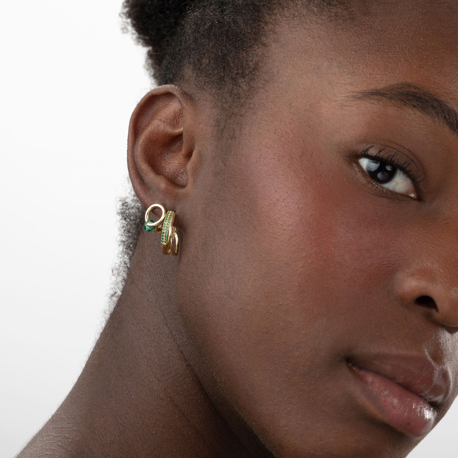Argolas Prata Douradas Espirais Zircônia Branca