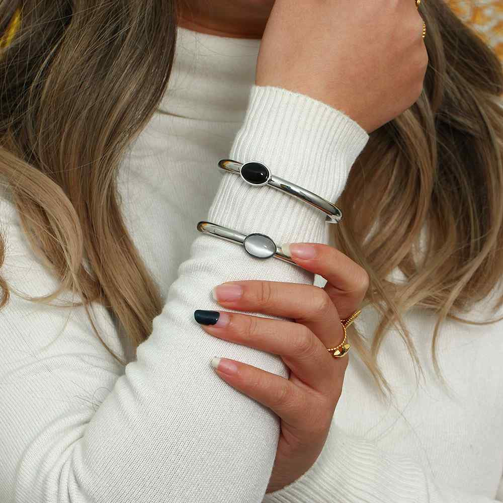 Bracelete Dourada Pedra Natural Negra