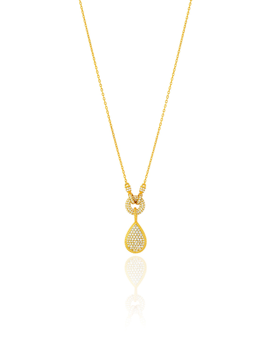 Colar Dourado em Prata com Aro e Gota de Zirconias